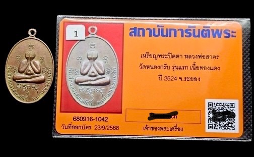 เหรียญปิดตารุ่นแรก หลวงพ่อสาคร วัดหนองกรับ 2524 เหรียญประสบการณ์ เดิมๆ พร้อมบัตรรับรองครับ