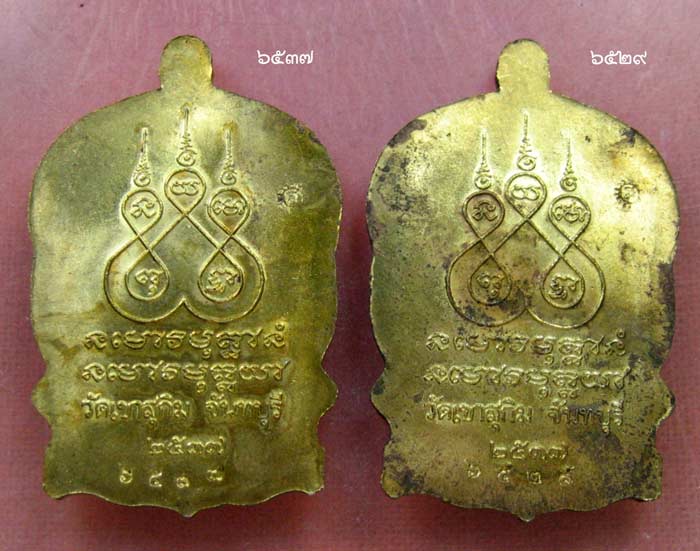 เหรียญนั่งพาน เนื้อทองเหลือง หลวงพ่อสมชาย วัดเขาสุกิม ตอกโค้ด ส และโค้ด จำนวน 2 เหรียญ หมายเลข ๖๕๓๗ และ ๖๕๒๙ ได้มาจากคนในพื้นที่