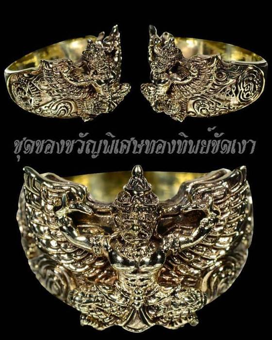 วัดใจ...#1 เนื้อทองทิพย์ขัดเงา (แยกชุดของขวัญพิเศษ) มีไซส์บอกกลางวงแหวนหน้ากล่องครับ แหวนพญาครุฑ รวยล้นฟ้า หลวงพ่อหวั่น วัดคลองคูณปลุกเสก