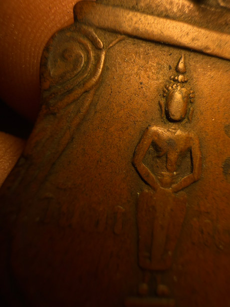 วัดใจ เคาะเดียว เหรียญพระประจำวันอาทิตย์หลวงปู่ใจวัดเสด็จ ปี2494 สภาพใช้พุทธคุณเต็ม |
