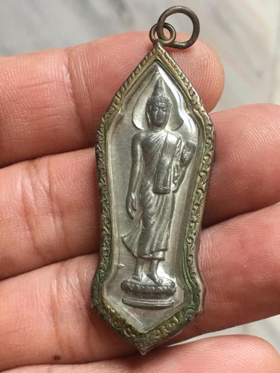 เหรียญพระพุทธ 25 ศตวรรษ เนื้อชินตะกั่ว ปี 2500 พิมพ์ไม่มีเข็ม เลี่ยมเก่ากรอบเดิมจากวัด สภาพค่อนข้างสมบูรณ์ ด้านหลังมีคราบจากการใช้และเก็บเดิมมาบ้างเล็กน้อย