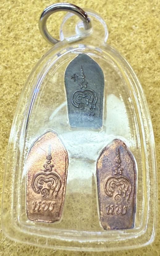 พระปรกใบมะขาม หลวงพ่อแพ วัดพิกุลทอง ปี2516 เลี่ยมพลาสติกเก่า 3องค์ เงิน นวะ ทองแดง |