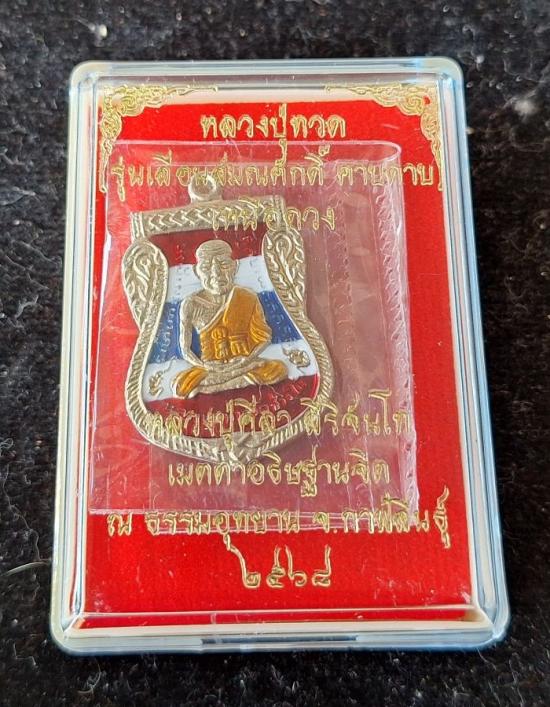 วัดใจ หลวงปู่ทวด หลวงปู่ศิลา เมตตาอธิษฐานจิต รุ่นเลื่อนสมณศักดิ์ เหนือดวง เนื้ออัลปาก้า ลงยาลายธงชาติ No.915 |