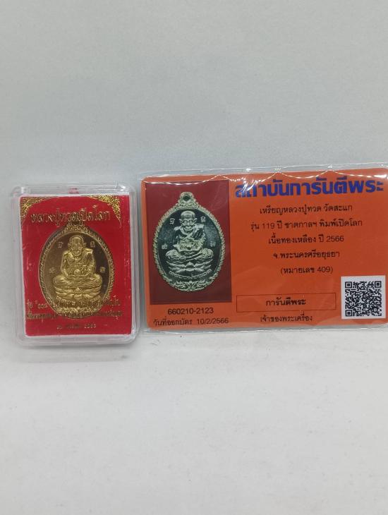 วัดใจ@@หรียญหลวงปู่ทวดเปิดโลก ปี 2566 รุ่น 119 ชาตกาล หลวงปู่ดู่ เนื้อทองเหลือง เลข 409 พร้อมกล่องเดิม บัตรรับรองสบายใจ