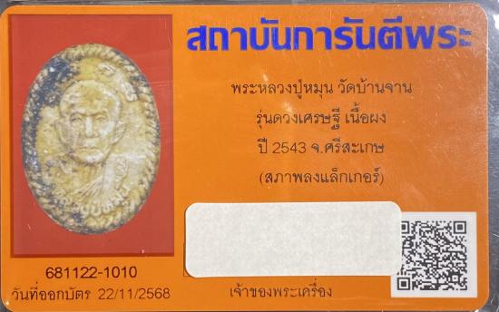 พระผงดวงเศรษฐี หลวงปู่หมุน ปี2543 สวยเดิม + บัตรรับรอง G-Pra ครับ