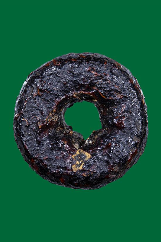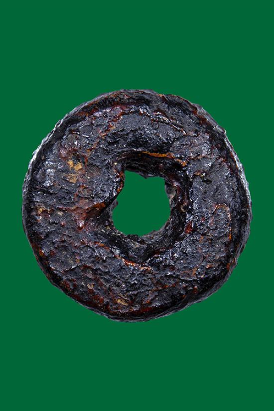 ตะกรุดลงรักตรงกลางเป็นรูร้อยเชือดเก่ามากไม่ทราบที่ |