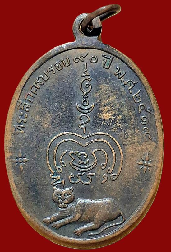 เหรียญ ที่ระลึกครบรอบ 90 ปี หลวงพ่อทองอยู่ วัดใหม่หนองพระอง จ.สมุทรสาคร ปี 2519 หลังเสือ |