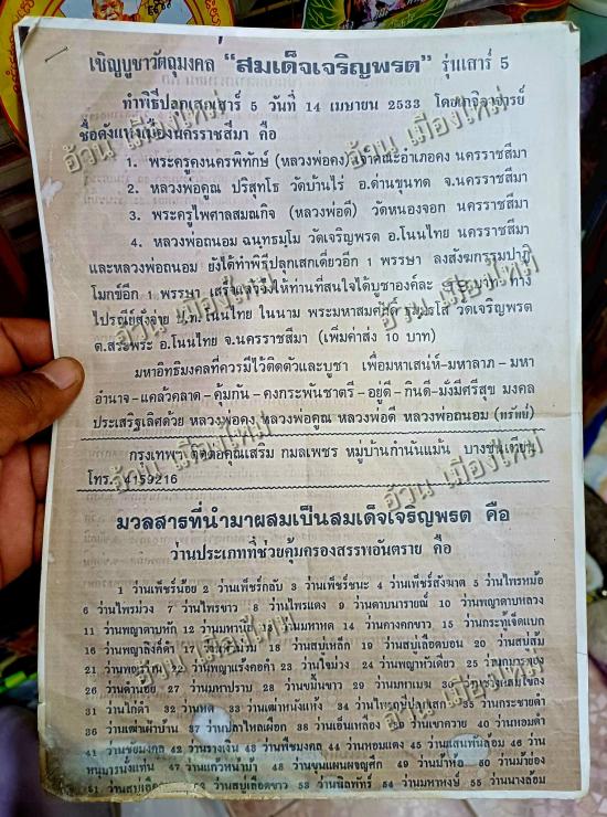 ++ปลุกเสก : วันที่ 14 เมษายน พ.ศ.2533 เสาร์ 5 เกจิอาจารย์แห่งเมืองนครราชสีมาดังนี้