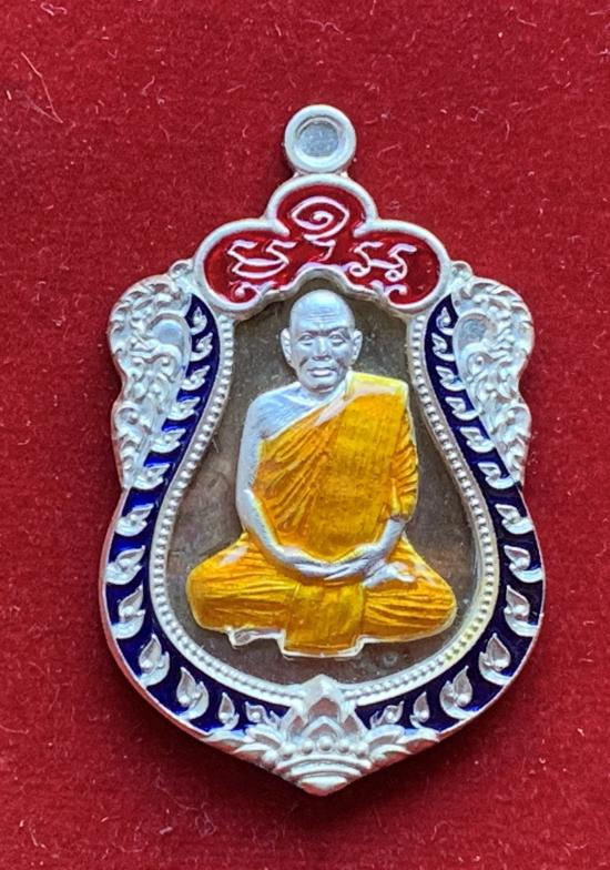 เหรียญเสมา ที่ระลึกสรงน้ำพระ หลวงพ่อปัญญา วัดกกกว้าว จ.นครสวรรค์ เนื้อนวะหน้ากากเงิน ขอบเงิน |