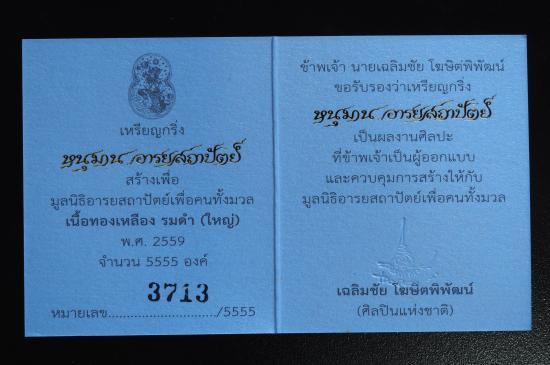 เหรียญกริ่งหนุมานอารยสถาปัตย์ เนื้อทองเหลืองรมดำ พิมพ์ใหญ่ โค๊ด หมายเลข โดย อ.เฉลิมชัย โฆษิตพิพัฒน์ กริ่งดังกังกาฬ องค์พระยังอยู่ในซีลเดิม ไม่ผ่านการใช้งาน เคาะแรก