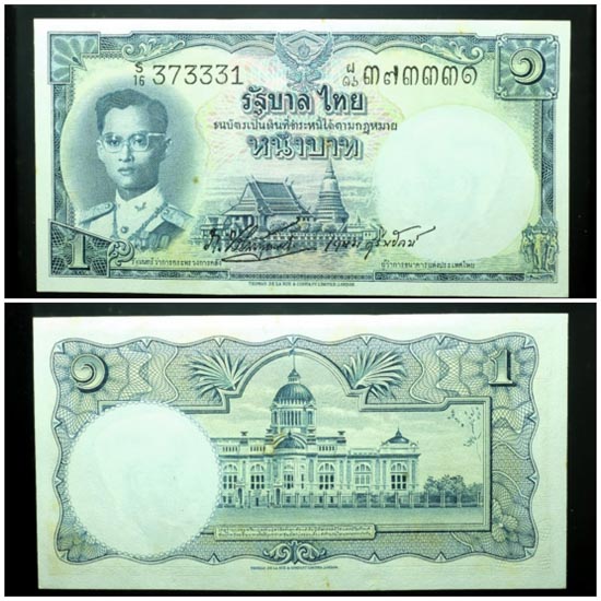 ในหลวง ร๙ ธนบัตรแบบ 9 ราคา 1 บาท รุ่น 5 ลายเซ็น เภา - เกษม UNC จำนวน 2 ฉบับ |