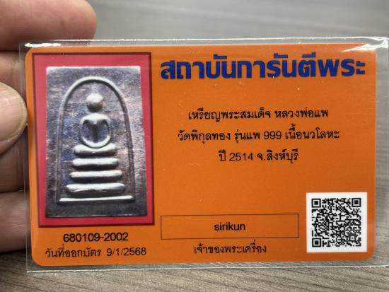 เหรียญพระสมเด็จ หลวงพ่อแพ ปี14 เนื้อนวโลหะ พร้อมบัตรรับรอง |