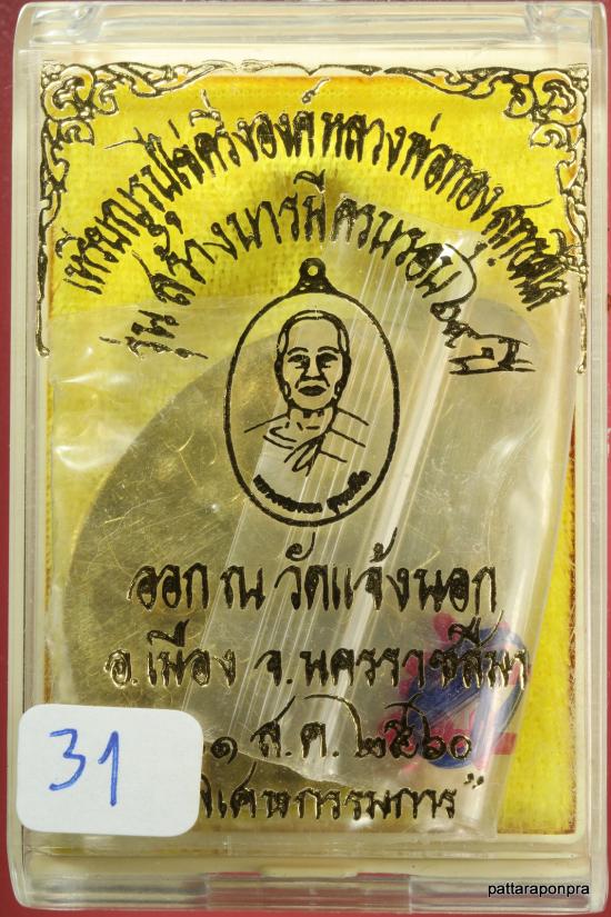 เหรียญหลวงพ่อทอง รุ่นสร้างบารมี ปี 2560 เนื้อทองฝาบาตรไม่ตัดปีกหลังเรียบ กรรมการ มีจารหลวงพ่อ หมายเลข 31 เลขวันเกิดหลวงพ่อ |