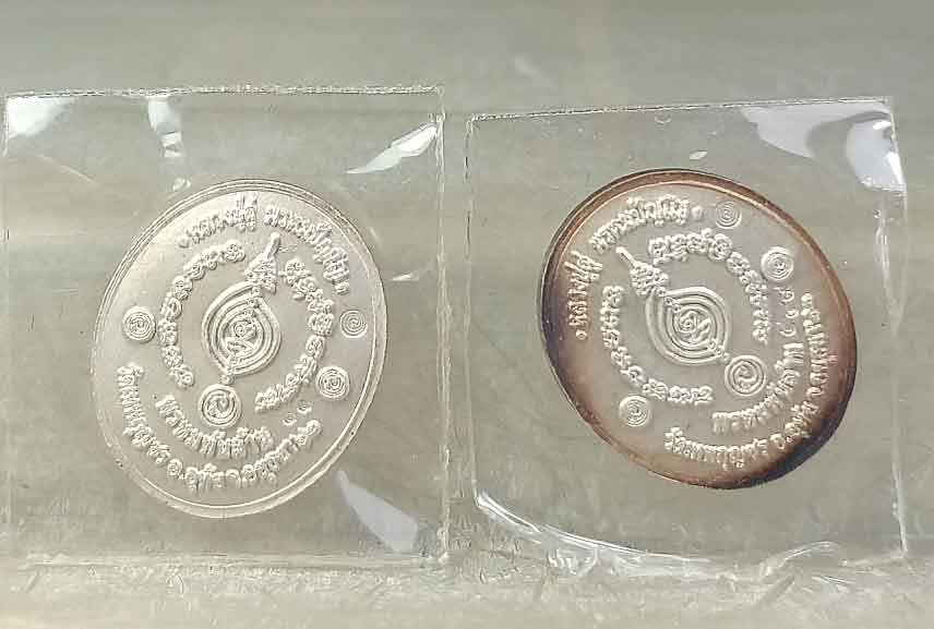 เหรียญเม็ดกระดุม เงินลงยา 2 องค์ หลวงปู่ดู่ วัดสะแก จ.อยุธยา รุ่นพรหมพันล้าน ปี2562 ออกวัดเทพกุญชร จ.อยุธยา หลวงพ่อเสือดำ ปลุกเสก กล่องเดิม