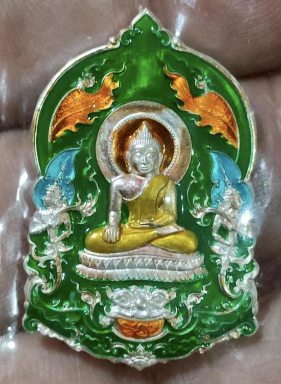 เหรียญหลวงพ่อสำเร็จศัดิ์สิทธิ์ สมเด็จธงชัย รวยพันล้าน จ.สระบุรี เนื้อเงินลงยา ปี 2564 ตอกโค๊ต ง.ล.ย. ตอกโค๊ต ช้าง ตอกหมายเลข 421