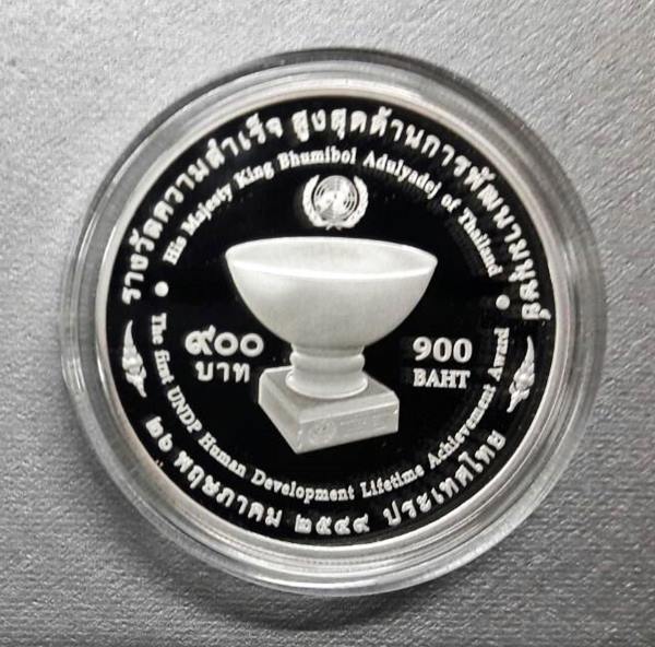เหรียญกษาปณ์ที่ระลึก รางวัลความสำเร็จสูงสุดด้านการพัฒนามนุษย์ ปี 2549 เนื้อเงินงัดเงา 99.99% หนัก 31.1 กรัม พร้อมกล่องเดิม จำนวน 1 เหรียญ