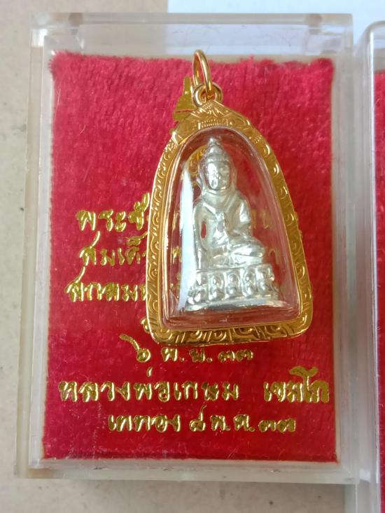 องค์ที่ 6 พระชัยวัฒน์ หลวงพ่อเกษม เขมโก เนื้อเงิน ปี 33 เลี่ยมทอง พระคัดสวย