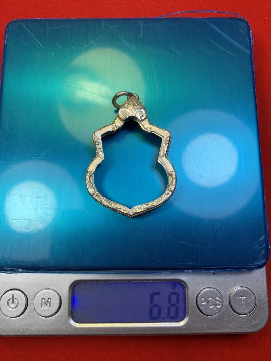 มือสองกรอบเงินใส่เหรียญน้ำเต้าหลวงปู่ทวด กว้าง 2.6 สูง 3.2 น้ำหนัก 6.8 กรัม |