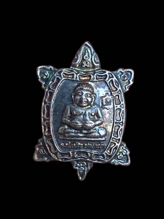 เหรียญเต่าจิ๋ว ไม่ทราบที่ ตัวเหรียญขนาดเล็ก ทรงเต่า ด้านหน้าเป็นรูปองค์พระนั่งสมาธิ ด้านหลังลงอักขระและยันต์เต็มพื้นที่ งานหล่อโลหะ ผิวผ่านการใช้งาน มีคราบอายุและรอยตามกาลเวลา ขนาดเหมาะสำหรับพกติดตัว แขวนห้อย หรือใส่กระเป๋าสตางค์ เหมาะกับสายสะสมเหรียญยันต์ขนาดเล็กและสายบูชาความหมายมงคล