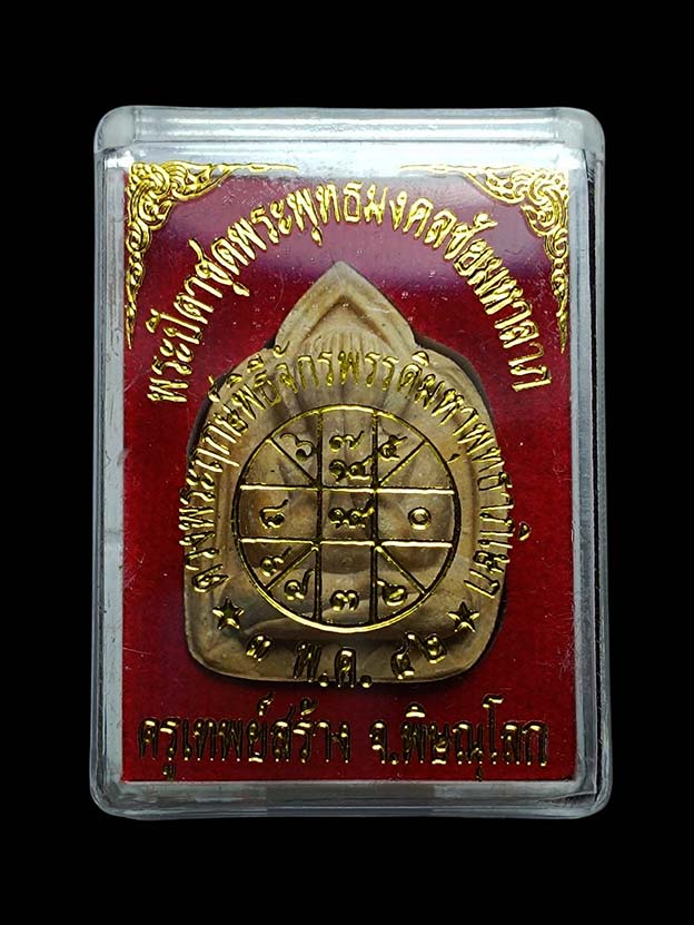 พระปิดตาชุดพระพุทธมงคลชัยมหาลาภ เนื้อผงฝังตระกรุดมหาจักรพรรดิ ปี พ.ศ.2542 จ.พิษณุโลก พระครูเทพย์สร้าง หลวงปู่หมุน ฐิตสีโล พระอาจารย์ตั้ว วัดซับลำไย ปลุกเสก สวย พร้อมกล่องเดิม