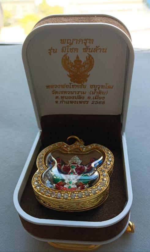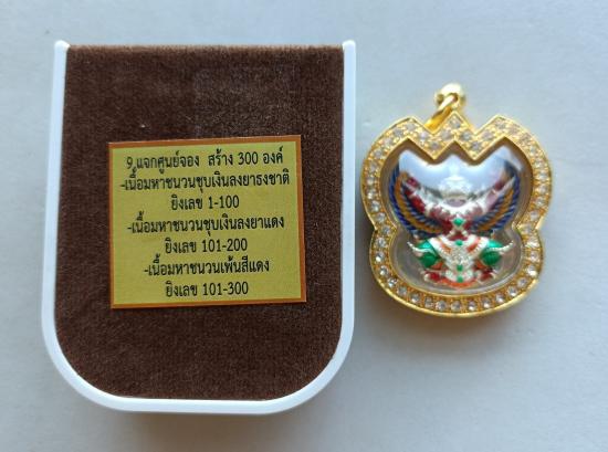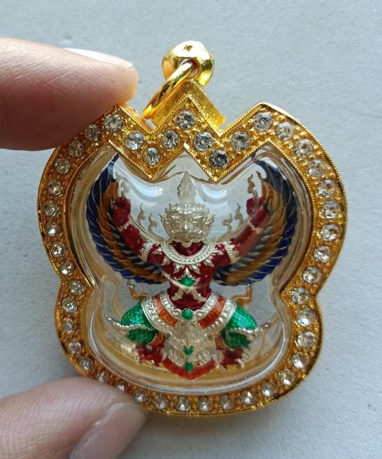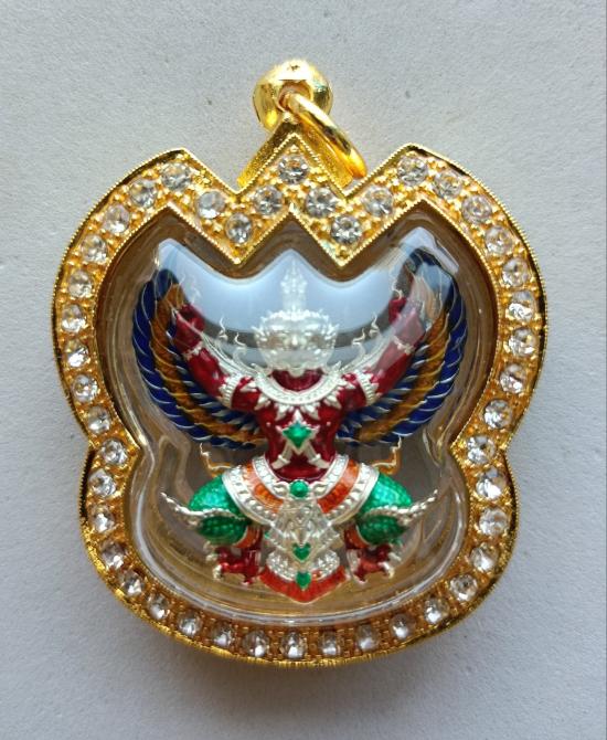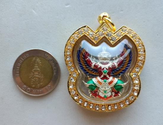 วัดใจเคาะเดียวแดงจ้า พญาครุฑ หลวงพ่อโชคชัย วัดน้ำดิบ แจกศูนย์จอง เนื้อชุบเงินลงยา เลี่ยมตลับชุบทองฝังเพชรกันน้ำ เคาะเดียวแดงจ้า