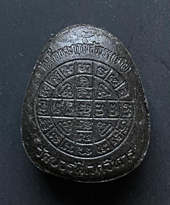 พระปิดตายันต์ดวงเล็ก ปี2523 สมเด็จพระญาณสังวร (เจริญ) วัดบวรนิเวศ_(เนื้อผงใบลานดำปลดหนี้)_มีเส้นเกศา_พิมพ์หนา_ |