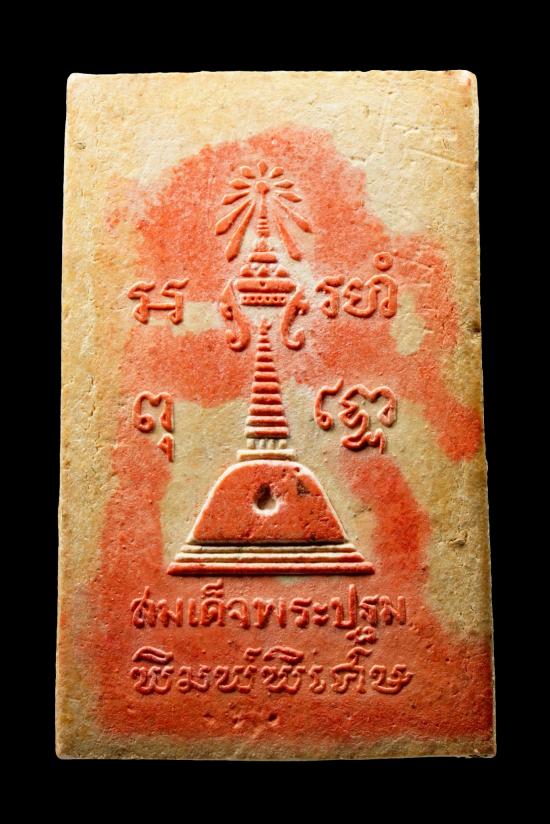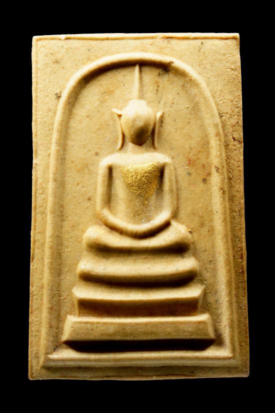 พระสมเด็จพระปฐม เนื้อพิเศษผสมเนื้อไม้แก่นจันทร์ ผสมแผ่นทองคำเปลวที่ปิดรอบพระร่วงโรจนฤทธิ์ ปิดทองเดิมที่พระอุระ (หน้าอก) องค์พระ