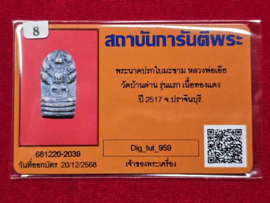 เคระเดียวแดง พระนาคปรกใบมะขาม หลวงพ่อเอีย วัดบ้านด่าน รุ่นแรก เนื้อทองแดง ปี 2517 พร้อมบัตรรับรอง |