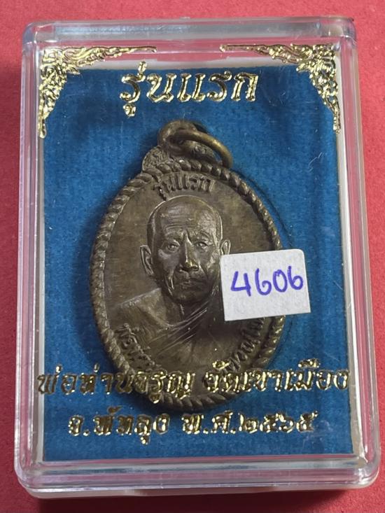 เหรียญ พ่อท่านจรูญ วัดเขาเมือง เนื้อ ชนวน ห่มเฉียง หลังยันต์