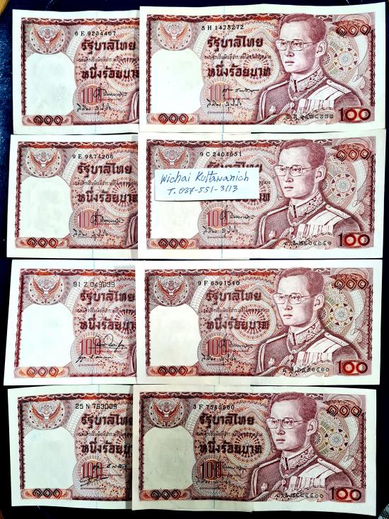 ธนบัตร ร 9 แบบ 12 ชนิดราคา 100 บาท ช้างแดง ผ่านใช้น้อย สวยๆ เลขไม่เรียง 8 ใบ |