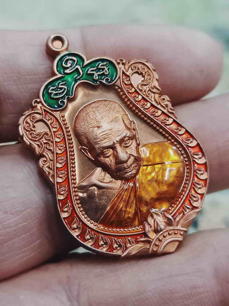 วัดใจ 100 เหรียญเสมาฉลองสมณศักดิ์ หลังพัดยศ หลวงปู่อิ่ม วัดทุ่งนาใหม่ จ.นครศรีธรรมราช 2566 ทองแดงผิวไฟ ลงยาขอบ จีวร หมายเลข 46 กล่องเดิม |