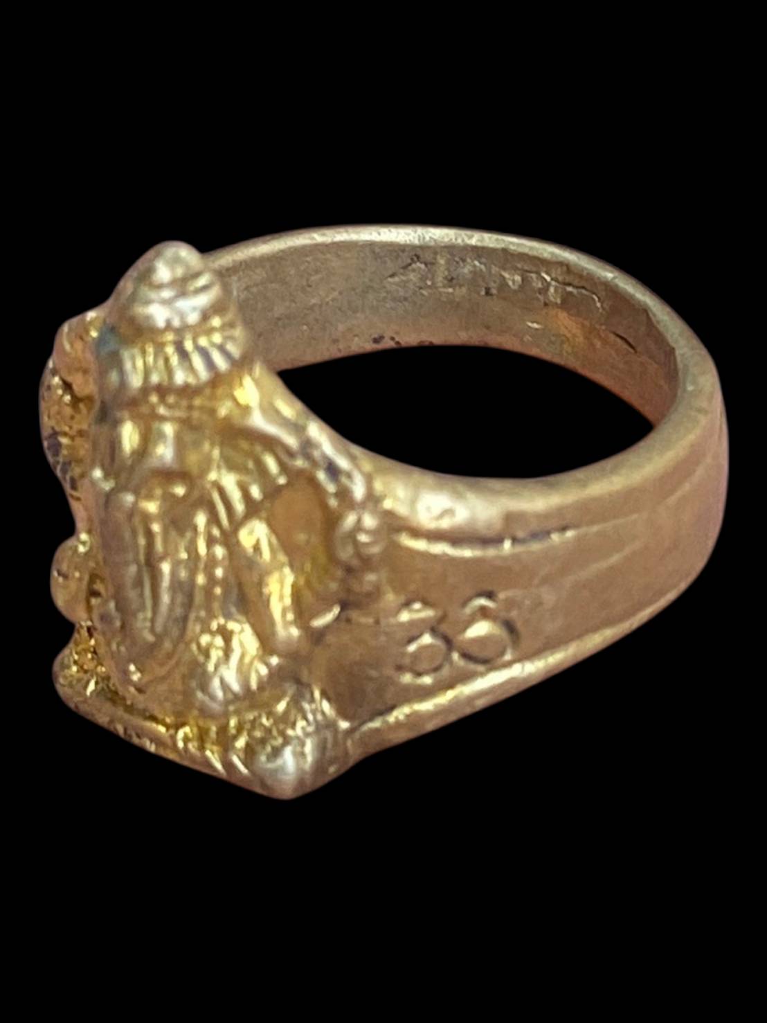 แหวนพระพิฆเนศ งานหล่อเก่า ลักษณะเป็นแหวนหุ่นพระพิฆเนศนูนสูง รายละเอียดเห็นตามสภาพ มีคราบผิวเดิมและร่องรอยการใช้งานจริง เหมาะกับสายบูชาพระพิฆเนศเพื่อความสำเร็จและความราบรื่นในการงาน ดูองค์จริงตามรูปทุกมุม ไม่ยืนยันความแท้หรือที่มาแน่ชัด