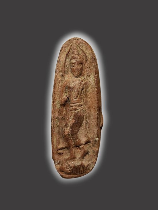 A6090.พระเนื้อดิน ปางลีลา ไม่ทราบที่ เคาะเดียวเเดง |