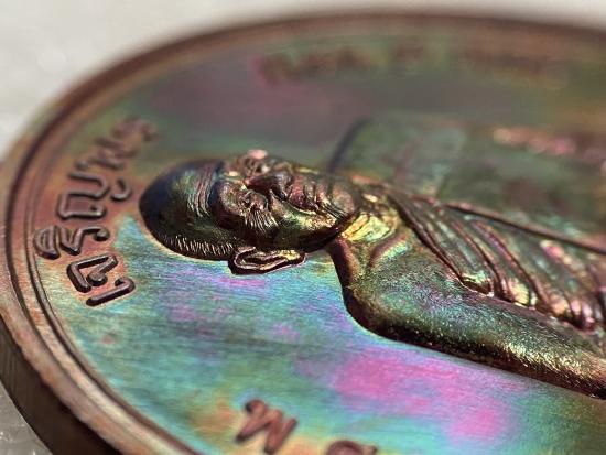 หลวงปู่แผ้ว ปวโร วัดรางหมัน เหรียญรุ่น เจริญพรบน วาระ 8 รอบ (เนื้อทองเเดงผิวรุ้ง) ###3