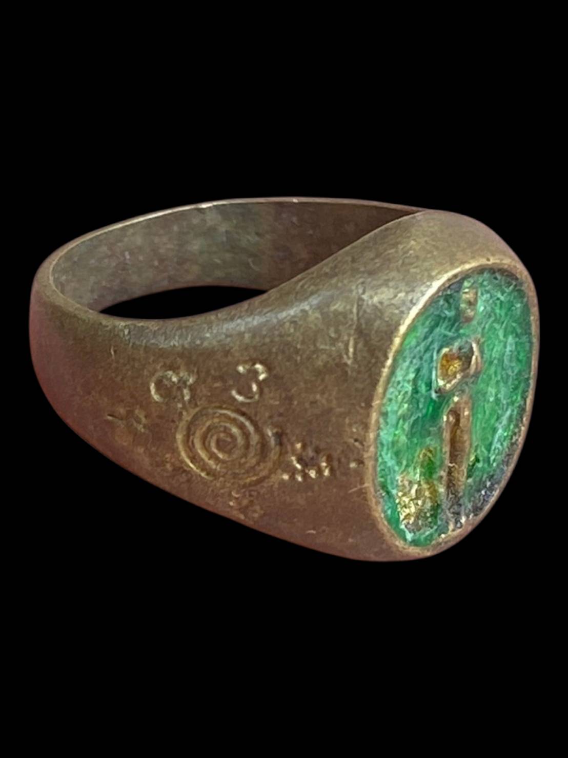 แหวนเก่าไม่ทราบที่ ลักษณะเป็นแหวนงานเก่าทรงหนา ตัวเรือนโลหะเก่ามีคราบอายุและร่องรอยการใช้งาน ผิวเดิมไม่ผ่านการขัดแต่ง หน้าแหวนฝังวัสดุสีเขียว ลวดลายภายในสึกตามกาลเวลา ด้านข้างตัวเรือนมีลายจารหรืออักขระเก่า พิจารณาตามภาพและความพอใจเป็นหลัก เหมาะสำหรับสายเครื่องรางหรือผู้ที่มองหาแหวนเก่าไว้สะสม