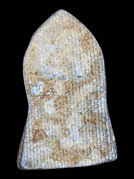 พระกรุเนื้อชินเก่า ไม่ทราบที่ ลักษณะเป็นพระกรุเนื้อชิน ฟอร์มทรงสามเหลี่ยมยอดแหลม องค์พระนั่งปางสมาธิภายในซุ้ม ผิวเนื้อชินเก่าแห้ง มีคราบกรุและคราบอายุธรรมชาติปรากฏทั่วองค์ รายละเอียดองค์พระยังพอมองเห็นเส้นสายเดิม ฐานและซุ้มมีร่องรอยการฝังกรุชัดเจน ไม่ผ่านการล้างหรือแต่งผิว ลักษณะโดยรวมเป็นพระกรุสายเก่า เหมาะสำหรับผู้ที่ชื่นชอบพระกรุเนื้อชินเดิม ๆ เก็บบูชาหรือสะสม พิจารณาตามภาพและความพอใจเป็นหลัก