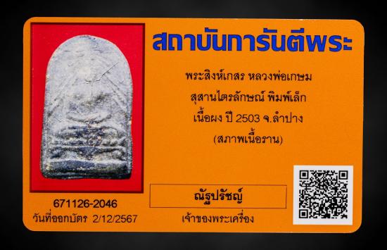 พระผงสิงห์เกสรหลวงพ่อเกษม เขมโก ปี 2503 |