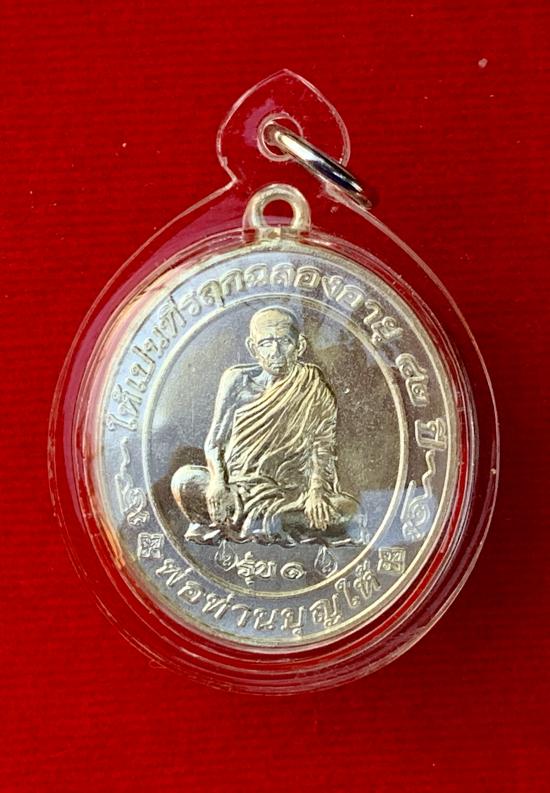 เหรียญห่วงเชื่อมรุ่นแรก ที่รฤกฉลองอายุ 82 ปี พ่อท่านบุญให้ วัดพรหมมัญพงศาราม จ.นครศรีธรรมราช เนื้อเงิน |