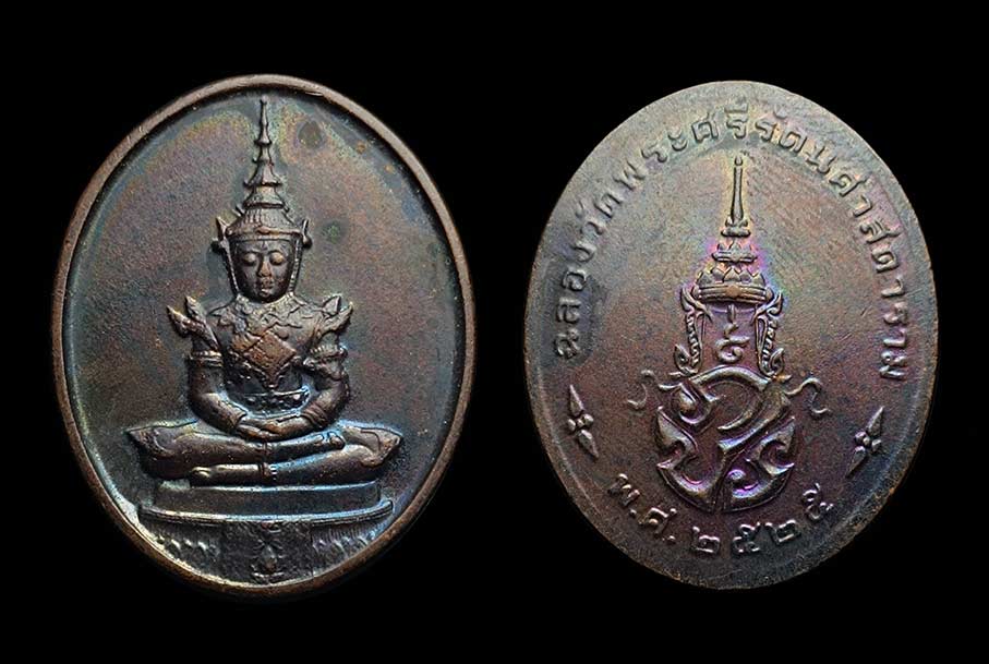เหรียญชุด พระแก้วมรกต จำนวนรวม 3 เหรียญ หลังพระปรมาภิไธยย่อ ภปร ฉลองกรุงรัตนโกสินทร์ 200 ปี พ.ศ.2525 ทรงเครื่องฤดูหนาว,ทรงเครื่องฤดูร้อน,ทรงเครื่องฤดูฝน เนื้อทองแดง พิธีใหญ่ พระเกจิอาจารย์ร่วมปลุกเสกหลายท่าน
