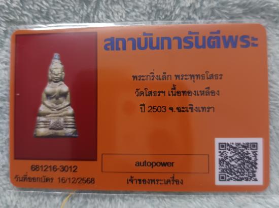 *** พระกริ่ง ลพ.โสธร ปี 2503 + บัตรรับรอง G ครับ ***