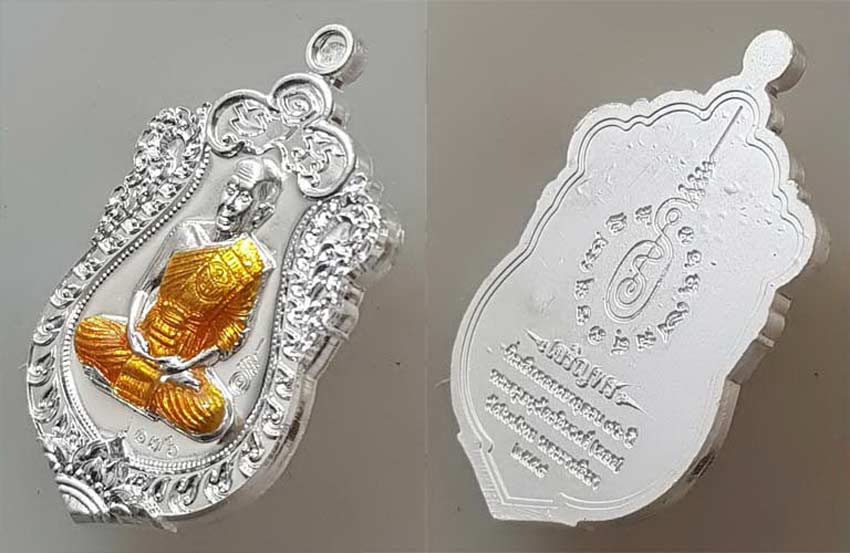 ::(**เหรียญเสมา**เนื้อ-เงินบริสุทธิ์/ลงยาจีวร หมายเลข 176 (ลงท้าย0-4-6 ลงยาจีวร)ราคาจอง 2,000 บาท::พร้อมกล่อง