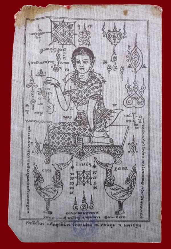 แดงที่เคาะแรก !!! ผ้ายันต์ แม่นางกวัก หลวงพ่อเต๋ วัดสามง่าม ปี2518 ปั๊มตราวัด