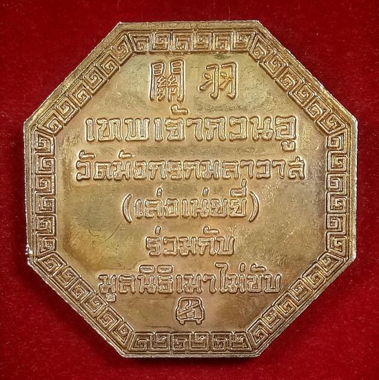 เหรียญ แปดเหลี่ยมเจ้าพ่อกวนอู วัดมังกรกมลาวาส(วัดเล่งเน่ยยี่) ร่วมกับ มูลนิธิเมาไม่ขับ.....กะไหล่ทอง |