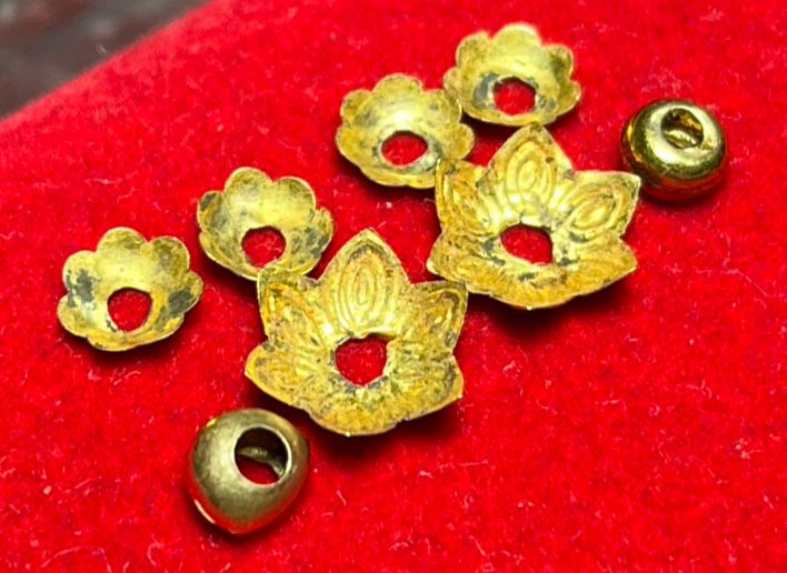 !!!...วัดใจ...ฝาครอบทองแท้ 3คู่ และ เม็ดทองแท้ 2เม็ด(ชำรุด1เม็ด) ขนาดตามรูป เป็นอะไหล่ร้อยสร้อยได้สบาย เปอร์เซ็นต์ดี มีใบแจ้งครับ...!!!