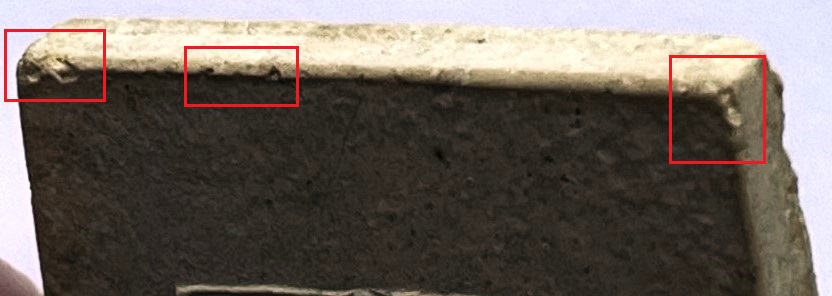 - ด้านหน้า พระมีตำหนิกระเทาะขอบทุกด้าน+ขอบบนด้านหลัง ตามภาพด้านล่าง