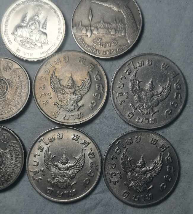 ชุดแรก เหรียญ ๑ บ.หลังครุฑ คัดสวย ๆ 4 เหรียญ ๒ + บ.งานปีต้นไม้ 2 เหรียญ + ๒ บ.กาญจนาภิเษก 1 เหรียญ + เหรียญ ๕ บ.ปี ๒๕๓๐ 1 เหรียญ