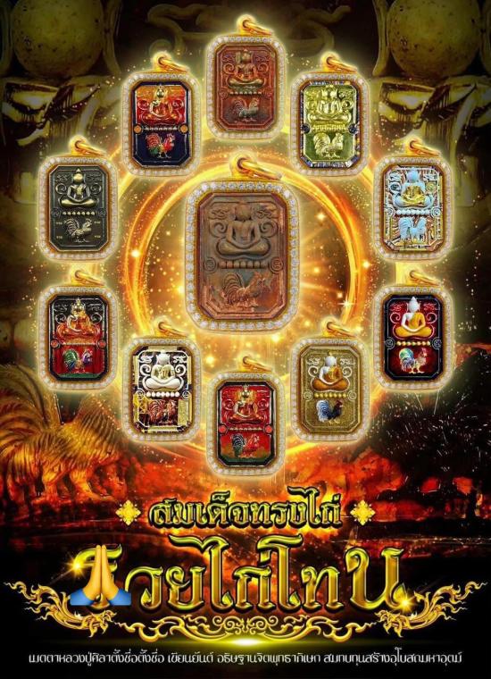- พระสมเด็จทรงไก่ รุ่นรวยไก่โทน หลวงปู่มหาศิลาเมตตาเขียนยันต์ ตั้งชื่อ อธิษฐานจิต เนื้อเหลืองหน้าฝังพลอย หลังปิดทอง เลข 58