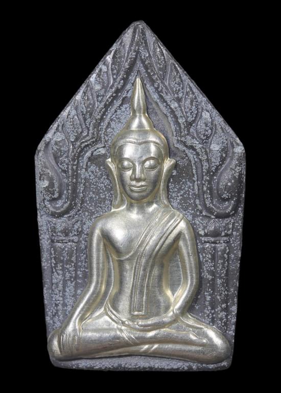 พระขุนแผน หลังกุมารสมบัติ หลวงพ่อพูล วัดไผ่ล้อม จ.นครปฐม ปี 2548 เนื้อชินตะกั่วหน้ากากเงิน |