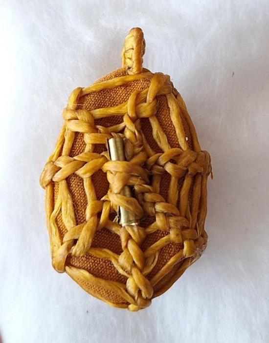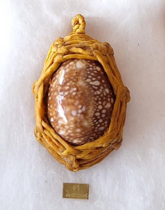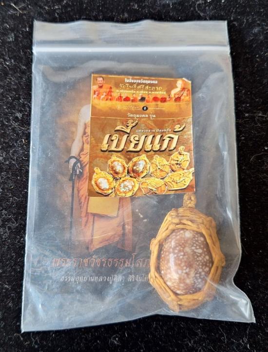 เบี้ยแก้ หุ้มจีวร ถักเชือก หลวงปู่ศิลา วัดโพธิ์ศรีสะอาด มีแผ่นเลขกำกับ ฝังตะกรุดทองเหลือง พร้อมใบคาถา ปี2567 |