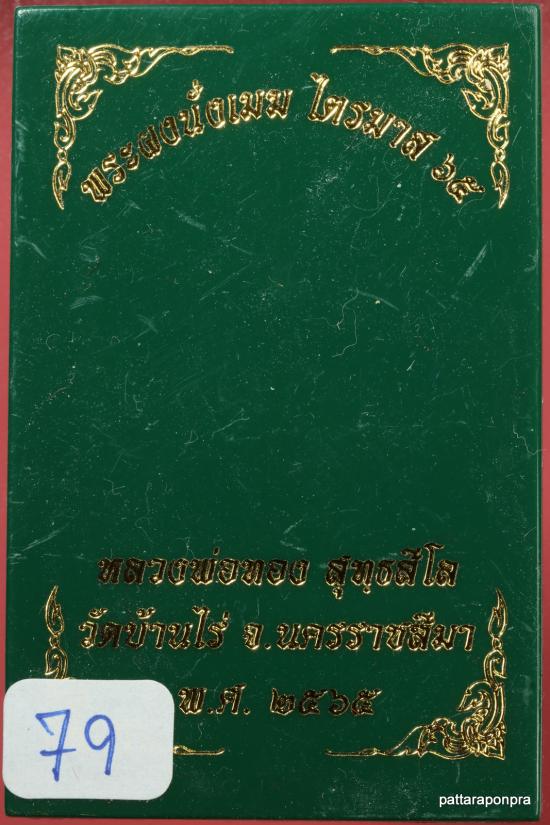 พระผงนั่งเมฆ หลวงพ่อทอง รุ่นไตรมาส65 ปี 2565 เนื้อผงใบลานฝังตะกรุดทองคำคู่ มีเกษา หมายเลข 79 |